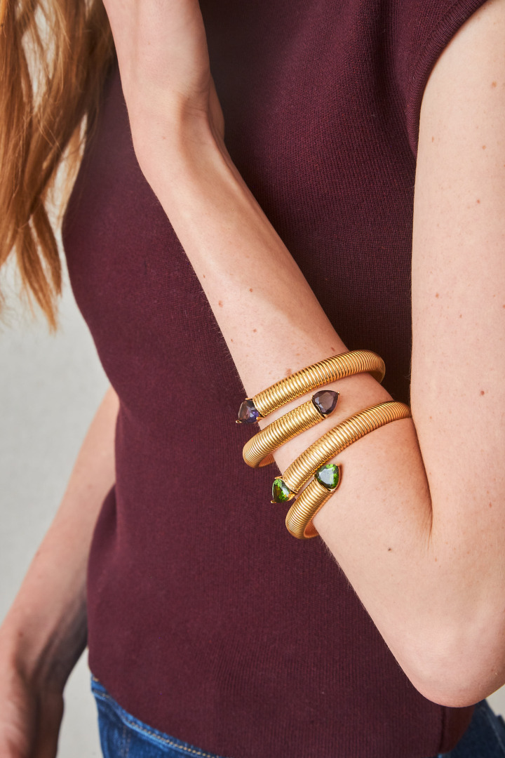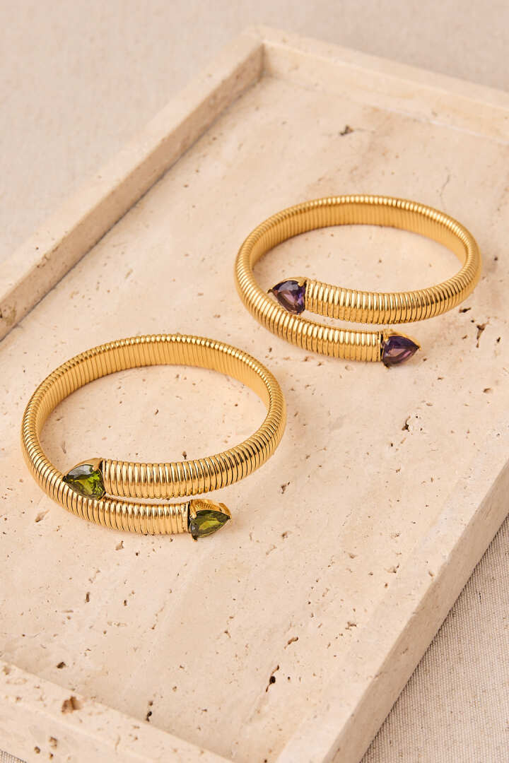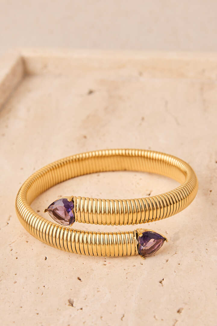 Pulsera con diseño estilo serpiente con extremos decorados de cristal morado